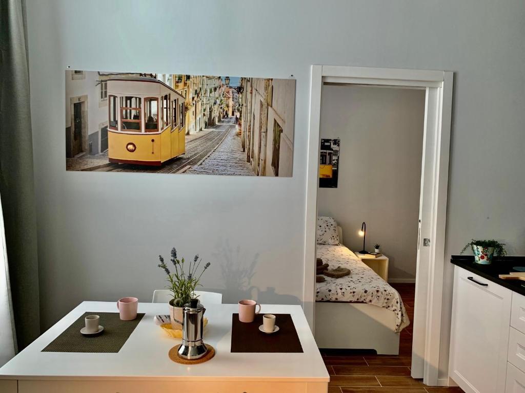 Disposizione: Stanza con letto matrimoniale, zona giorno con divano letto matrimoniale con cucina attrezzata, piano ad induzione e tavolo da pranzo, bagno con doccia e bidè.